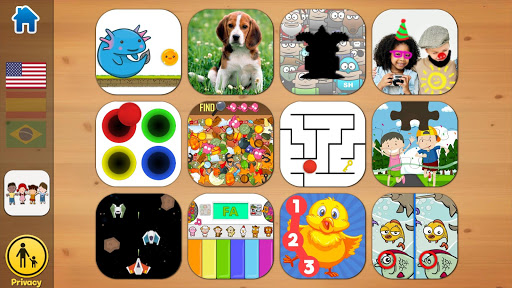This fun application contains 12 games designed for kids. In English, Spanish and Portuguese. With three levels of difficulty.