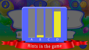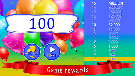 The Millionaire game, 'Quizzland,' contains 15 levels in which you need to answer 15 questions from various fields of knowledge. Like in the adult game, each question has four possible answers, of which only one will be correct. Each question and answer has its own reward. Game rewards for correct answers are not cumulative but are replaced with each new answer. When answering the fifth question, the first fixed reward of 1000 appears, and on the tenth, the second reward of 32000. During the game, the player can use three tips: