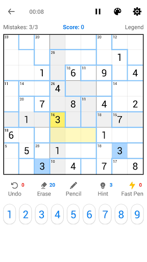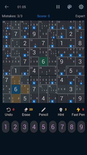 ✓ Fast Pencil Mode – Turn ON/OFF fast pencil to write possible solutions of Killer Sudoku in all cells with just one click