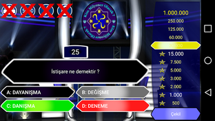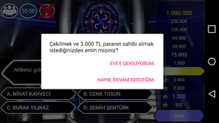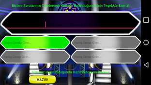 * Değişen karakterler ve yanlış yapma ihtimalleri ile yarışma atmosferini size hissettirecek telefon jokeri! Başka hiçbir bilgi yarışmasında yok!