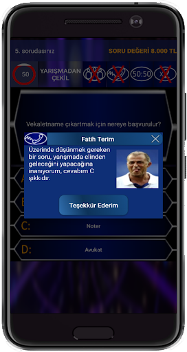 Telefon Joker Hakkı: Ünlü isimlerden oluşan bir listeden rastgele bir kişi size sorunuzu doğru yanıtlamanız için yardımcı olur, ortalama 4-5 saniye içinde cevap verebilir.