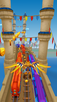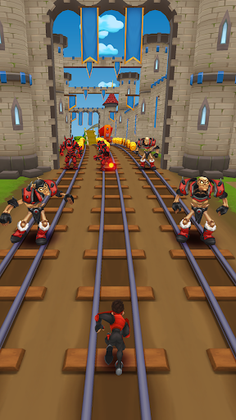 Kingdom Dash also enables you to compare your progress against your friends, adding a competitive edge to the game. To enhance your gaming experience, you can collect random prizes and power-ups by stepping over hover pads scattered throughout the game.