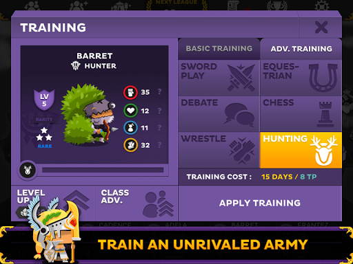Recruit & manage an army of over 40 unique classes including Lancers, Berserkers, and Dragoons to compete against other teams in the League.