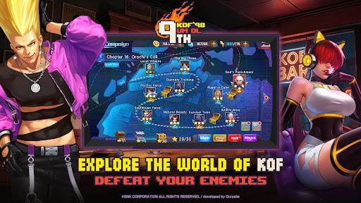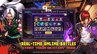 Fight your way through the 70+-level campaign that follows the classic storyline of the games, and a multitude of PVE challenge modes. Then take on players from all over the world in a variety PVP modes and tournaments, to eventually claim the real “King of Fighters” title!