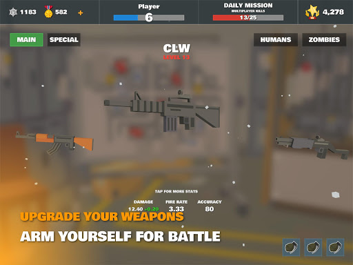 Upgrade weapons & show your skills to survive in Last War, multiplayer FPS egoshooter in low polygon style. Collect XP & unlock weapons in battle against survivors and zombies.