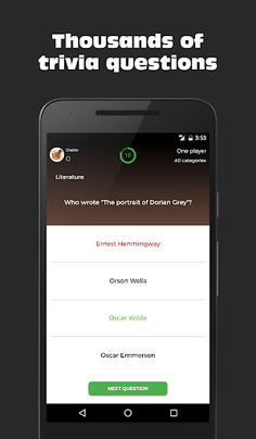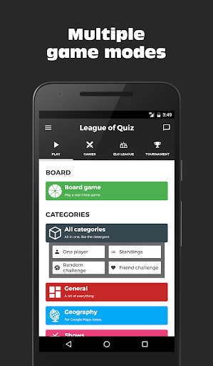 Challenge your friends in board trivial pursuit games or in duels competing in the ELO League. Also you can play friendly games or in one player mode with rankings.