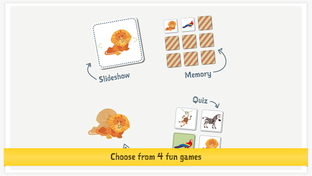 • Learn and play: challenging games (slideshow, concentration game, puzzle, and quiz).