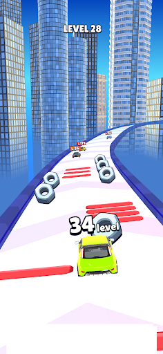 Collect gears and smash lower level cars to level up, avoid obstacles and higher level cars to beat the track !!