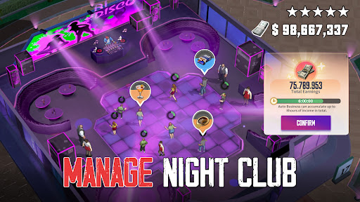 Take charge of your night club! Here, every decision you make impacts your club's reputation and bottom line. From hiring staff, booking talent, to orchestrating unforgettable parties, it's up to you to create the ultimate nightlife hotspot. You can acquire wealth, charm, luxury cars, exquisite wines, and the ultimate power that's just within your reach!