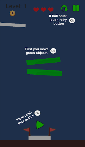 If you press the play button, green objects cannot be moved. If your ball is stuck and not moving, press the restart button in the upper right corner. Good luck.
