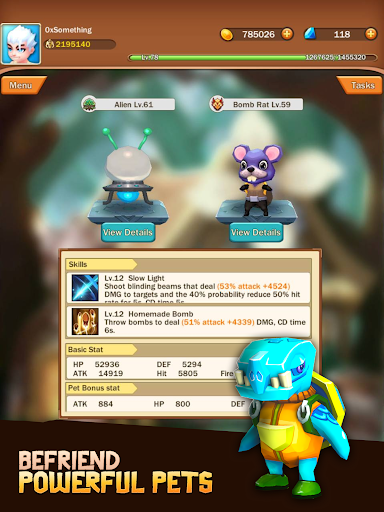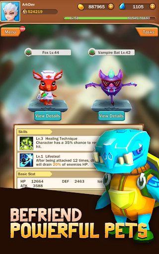 • Level up pets and their skills to increase their power.