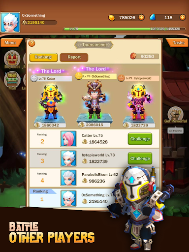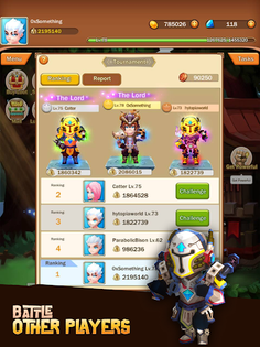 • Fight other players in the arena to earn rewards and rank up.
