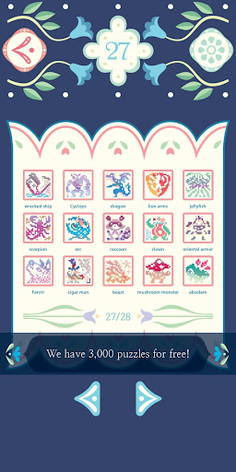 Picross Luna III: Solve puzzles and help the princess find moonkeeper after a long time, featuring user-friendly functions like puzzle save and small/large map options.