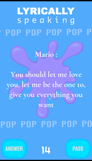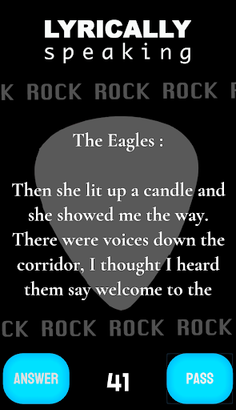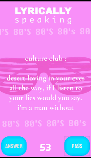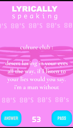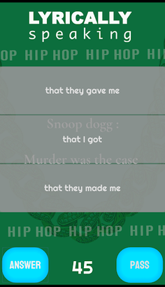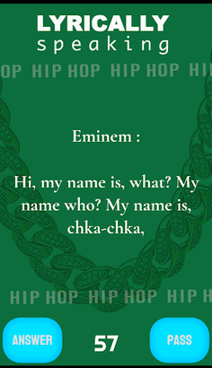 Play by yourself or play as a group. Test your music knowledge, in hip hop, rock, the '80s, pop, country, and r&b.