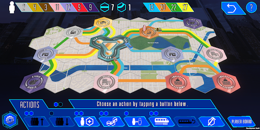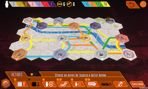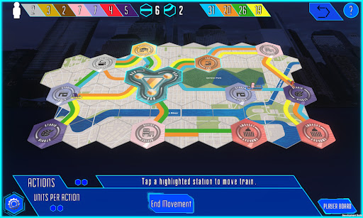 In this game, you will need to enhance your rail system's abilities to ensure that your passengers will reach their destinations first. The key to your success lies in your efficiency in pick-up-and-deliver, tile-laying, and engine-building. Strategize your moves and take advantage of the transparent tiles to lay your route so it can overlap with your opponents' tracks, winding you along from station to station.