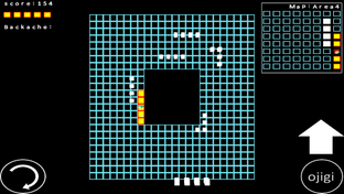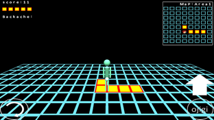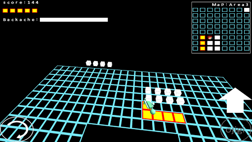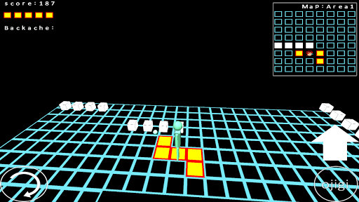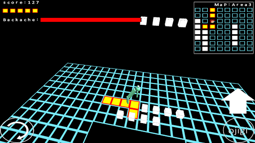 足の踏み場がほとんどない世界に取り残された 男をひたすら長生きさせるゲームです。 男が足場として期待できるのは、赤と黄色で構成された板だけです。 この世界には白いワームが徘徊しており、ぶつかると足場が消えていきます。 ワームを避ける唯一の手段はお辞儀をしてワームが通り過ぎるのを待つしかないです。 しかし、この男は腰痛もちです。 何もない世界に取り残された男が主人公なので、 このゲームのタイトルは、”MAN”