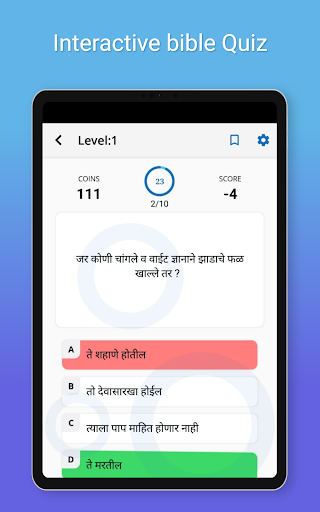 Download our app today and embark on a meaningful journey of spiritual growth, knowledge, and fun with the Marathi Bible. Whether you're a newcomer to the Bible or a seasoned scholar, our app caters to all levels of familiarity with the scriptures. Start your Bible quiz adventure now and unlock the transformative power of the Marathi Bible in your life.
