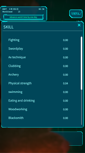 Numerous skills including fighting, crafting, gathering, swimming, eating, etc.
