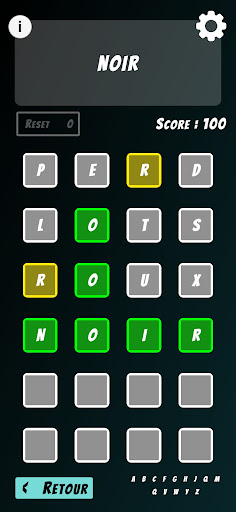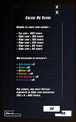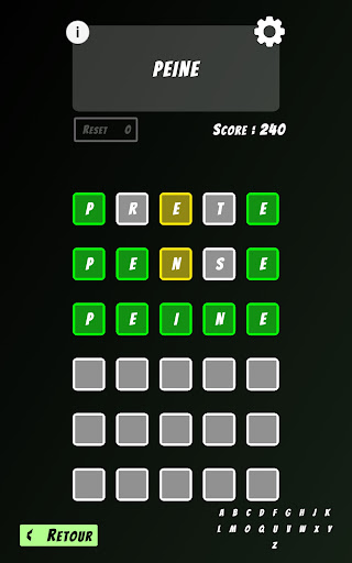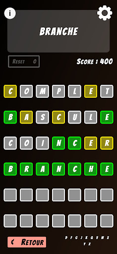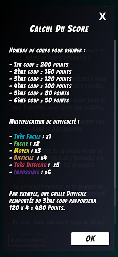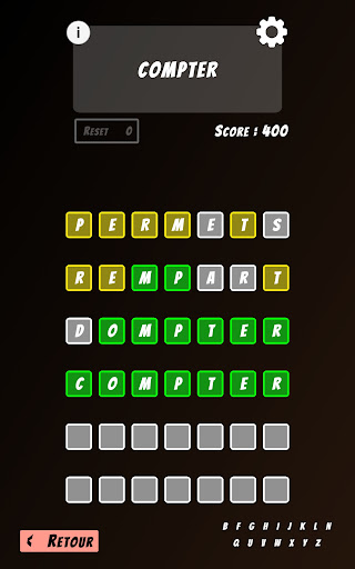 The game offers 6 unlockable difficulty levels, corresponding to the length of the word to guess: the first mode will make you guess words of 4 letters, while the last mode you will have to guess words of 9 letters!