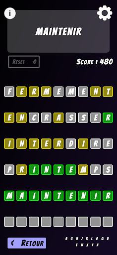 With 120 grids and randomly selected words from thousands of words, MasterMot guarantees a lot of original games.