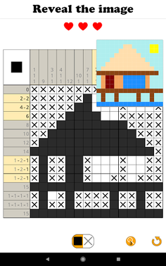 By filling all the right cells in this cross-puzzle, you will reveal a beautiful pixel art image! This is the main purpose of Nonogram.