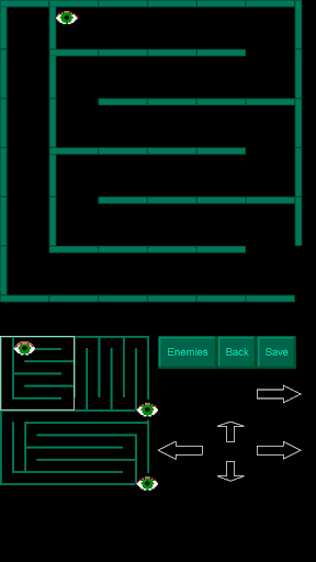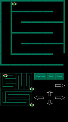 LevelsCreate a level by tapping to add walls. Each level will be 12 by 12 squares. Leave a hole in the border for the exit. Add enemies to levels by selecting each enemy and the starting position. You can also set which direction each enemy should start going when the level starts.