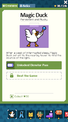 - As you climb up the tower and surmount distinct obstacles, complete challenges and fill Magic Duck's field notes to unlock added background stories, unprecedented relics, and numerous other fantastic gaming characteristics