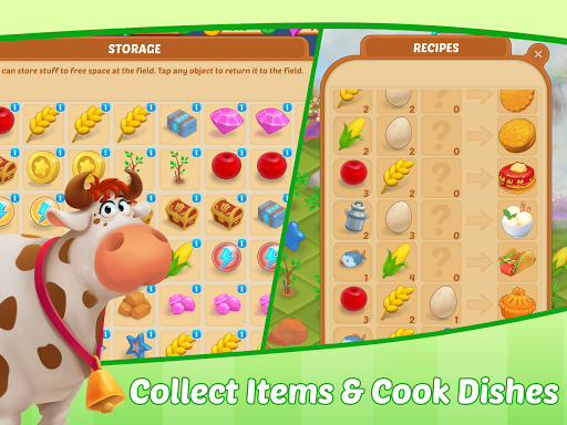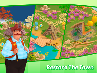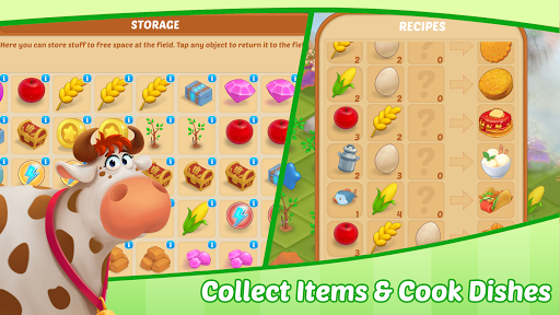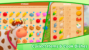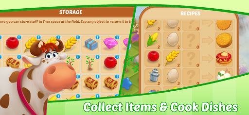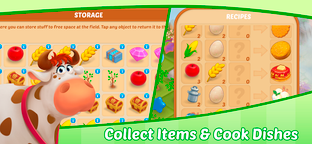 Organize your playing field, collect materials to repair buildings, and grow fruit and vegetables to make food. Upgrade your buildings to speed up production and upgrade your warehouse to get bonus slots. Collect rare items and open chests to get energy and coins!