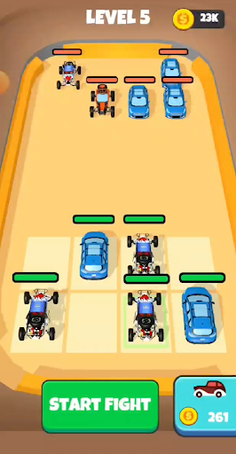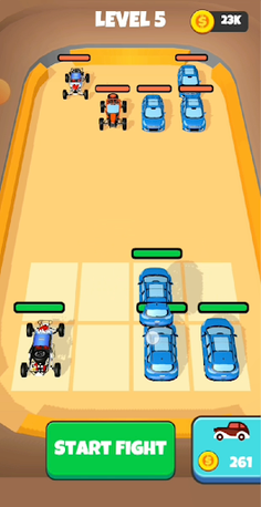 In this amazing game you will have to merge cars to make them stronger and then send them in the battlefield to fight