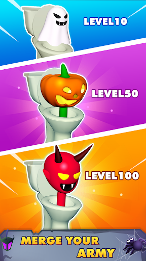 Merge Fight: Halloween Monster 🎃👻 is a fun and challenging merge and battle game where you can combine monsters to create new and more powerful creatures, including the skibidi toilet monster!