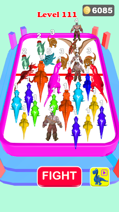 Assemble your powerful team by merge dinosaurs, monsters, and merge heroes, against your opponent. This is a real-time strategy game. Before the start of every fight, you need to assemble your dinosaurs. Place the acquired monsters on the battlefield and merge the same dinosaurs to level them up.