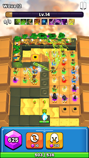 2. Merge to evolve: Combine heroes of the same type to upgrade their tier.
