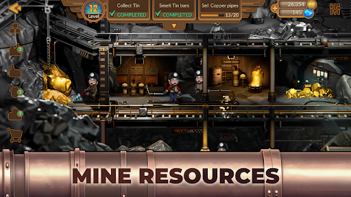The gameplay of Metropolis Tycoon allows you to create a city abundant in gold and resources. Strategically place your mine, manage buildings and resources, and gain profits from selling your mined goods at the right time. This classic idle mining game enables you to mine 15 different resources, including coal, copper, gold, and much more.