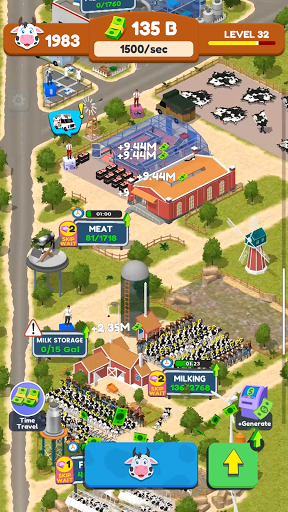 Play this free and incremental idle clicker game with colorful 3D graphics, tap to build and balance your resources, invest your money, build your army of cows and explore life to fullest, become a milk capitalist!