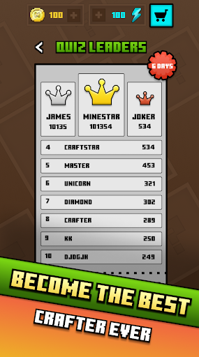 The leaderboard displays the scores of top players, and you can compete with others to get to the top of the leaderboard. Mine-craft Quiz is an excellent way to learn about the various recipes in Mine-craft while having fun and challenging yourself to improve your knowledge.