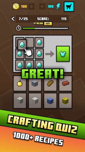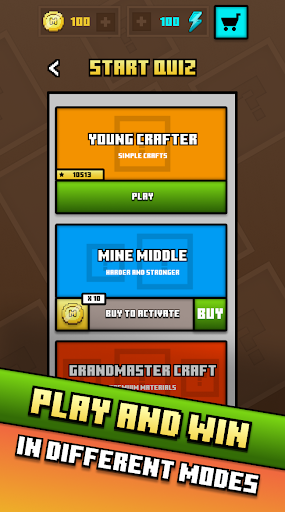 Mine-Crafter Quiz is a fun and interactive mobile app, designed for players and fans of the game who want to test their knowledge of Mine-craft recipes.