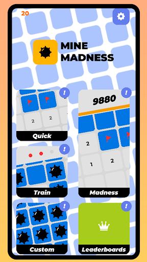 In Minemadness, find mines with clues given by numbers & logical reasoning in Classic, Madness, Training, or Custom mode, and share your scores worldwide.