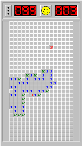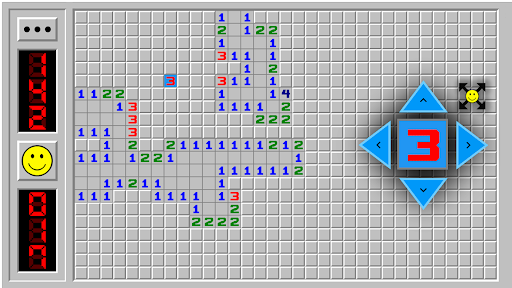 Some boxes have a number, which indicates the number of mines in the surrounding cells. Thus, if a box has the number 3, it means that of the eight squares around (if it is not in a corner or edge) there are 3 with mines and 5 without mines. If a box is found without a number, it indicates that none of the neighboring boxes has a mine and these are discovered automatically.