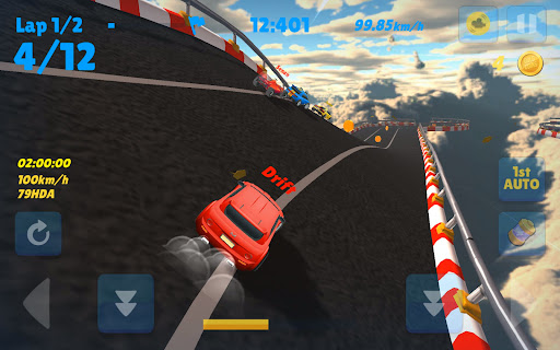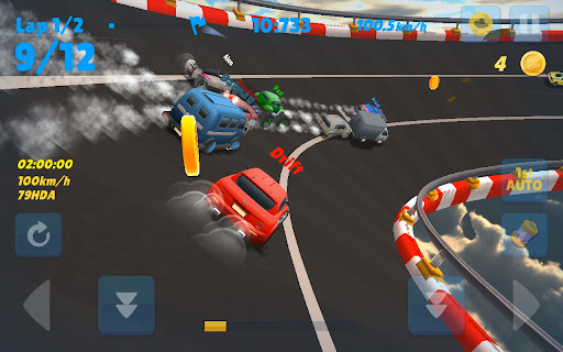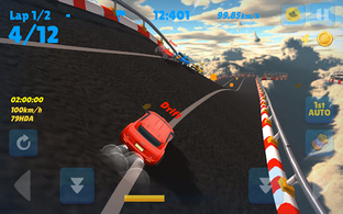 Achieve first place on various tracks, from [Air Circuit] on the clouds, [Water Land] running on water, [Rock Village] running on a rocky mountain, rough dirt road [Off-roading], and the dream stage [F1 Circuit]!