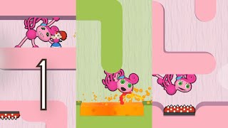 Solve mazes and puzzles with Mommy and Huggy Wuggy, stretch their long limbs to avoid obstacles and find the treasure!
