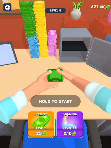 Hold to keep countingBe careful or you will burn all that moneyStack big bundles and make more moneyUpgrade your counting skills