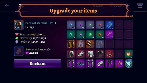 While fighting for survival, players get a chance to earn and create opportunities to strengthen their chosen character with eight types and seven rarities of equipment. Players have the option to acquire new armor and gem slots and can combine gems of one kind to form upgraded gems. By visiting the smith in town, players can even enhance and refine their armory for better protection.