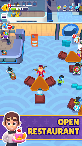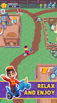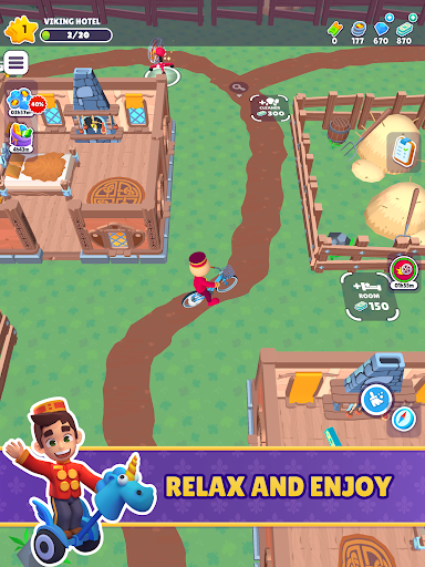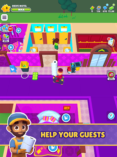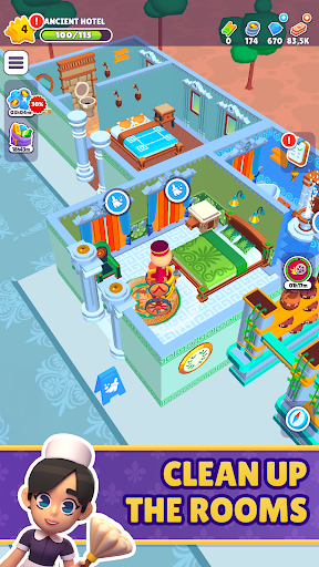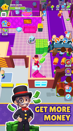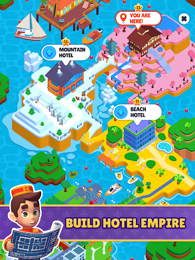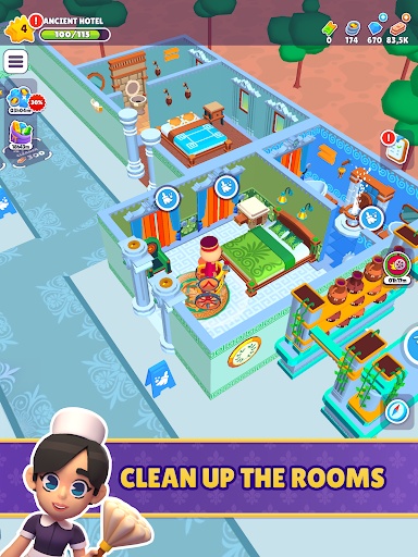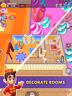 Start small as a bellhop, cleaning rooms, greeting guests, collecting payments and tips, and stocking up on bathroom supplies. But as you grow and expand your hotels, upgrade your rooms and facilities to reach the ultimate level of luxury.