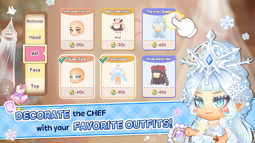 - Decorate your own chef with dozens of costumes as much as various dishes!
