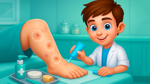 Treat the injured patients and show your medical skills to cure them. Perform realistic foot surgeries with