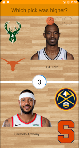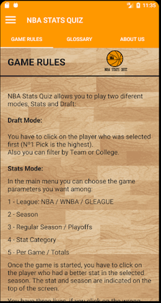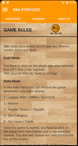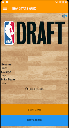 NBA Stats Quiz allows you to play two diferent modes, Stats and Draft: