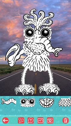 Make your own monsters! Hundreds of thousands of combinations are possible with MONSTER-MAKER! Simply select elements, move them in the drawing area, scale them, rotate them and combine them with other elements until your desired monster is complete. With the text function and the speech bubbles, your creature can even communicate. With the photo function you can use your own backgrounds from your photo gallery. Attention ready monsters!