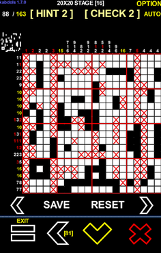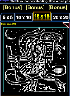 Picross is a logic puzzle game where you use number hints to fill a grid and reveal an image. Features various puzzle sizes and auto-save support.