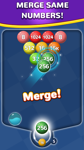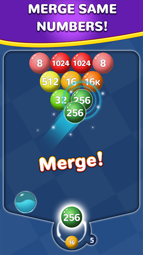 Shoot bubbles and merge to 2048 and even larger numbers, winning high scores🥇🥇!