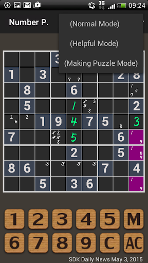 It is the mode for beginners who come to a deadlock, and you can know next plays of the Number Place puzzle in the mode.